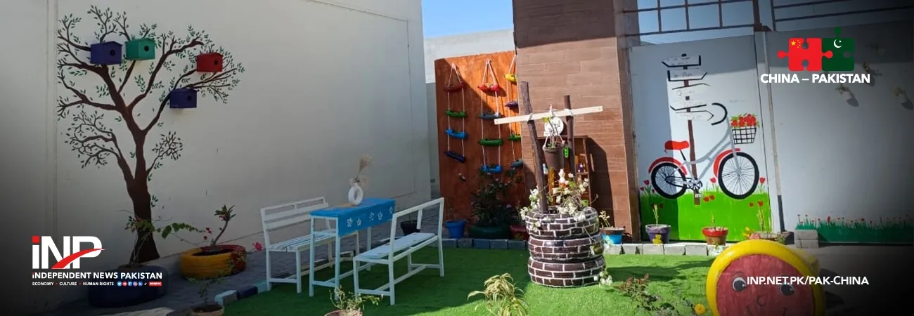 More than 500 students of the China-Pakistan Friendship School Gwadar, also known as the Government Girls High School Faqeer Colony Gwadar, under the supervision of their teachers, have successfully developed a beautiful garden and activity area. The students worked with great dedication to clean, design, and decorate an unused corner of the school. They transformed it into an attractive green space by planting flowers, placing pots, and laying artificial grass.